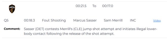 第四次是漏判,發生在距離加時賽結束還有18.3秒,薩瑟在梅里爾三分跳投出手后,主動用下肢進行了非法接觸,干擾了他的投籃。這是一次漏吹的防守犯規,梅里爾本該獲得三次罰球機會,有望扳平比分。活塞獲利,騎士吃虧。